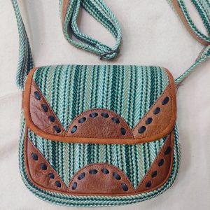 • Beautiful woven patterns with vegan leather details