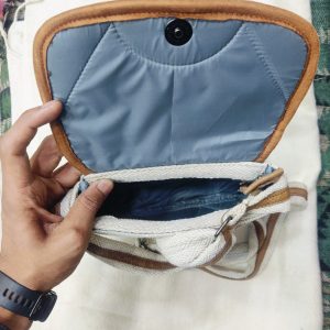 The handwoven patterns bring an authentic Nepali touch, while the structured design ensures long-lasting performance. Lightweight yet spacious, it fits your daily essentials with ease — phone, wallet, makeup pouch, diary, and more. The adjustable strap makes it ideal for travel, casual outings, school, or daily commuting.